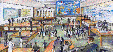 Die Ateliers für Innovatoren sind der Kristalisationskern des Arbeitens in der Wissensstadt. Ihre architektonische Gestaltung und ihr Ambiente laden zur Begegnung und Arbeit ein. Die fraktale Topologie der Stadt, die den Arbeitsprozeß im XENIA-System repräsentiert, findet sich in der Gestaltung der Ateliers wieder und erleichtert die Orientierung.