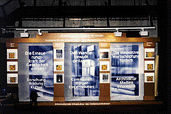 ![]() Schreine, Altäre, Tabernakelschränke Vitrinen, Schaufenster, Regale und Schränke, Ausstellungsequipment Beispiel: schreinartige Anordnung von kontextuellen Aussagen zum Wandel zur Informationsgesellschaft (Ensemble der Medien) Gestaltungs- und Nutzungsperspektiven: Andeutung von Ordnungen, Beziehungen und Affinitäten durch topologische Positionierungen der Informationsobjekte |